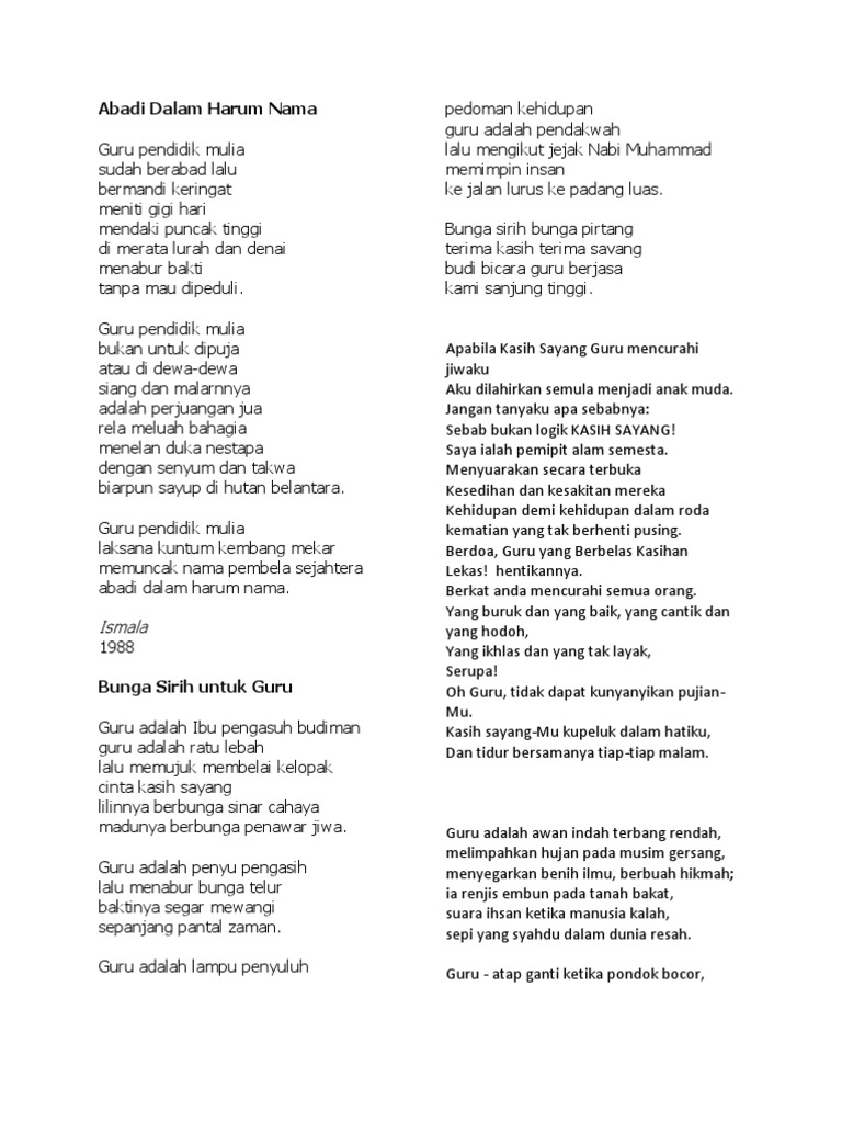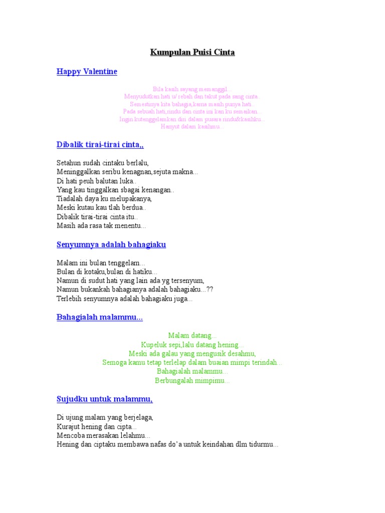 Jasa tersebut sangatlah besar dan tidak mungkin sekali seorang anak bisa membalasnya. Semoga bisa bermanfaat dan semakin sayang kepada orang tua kita. Setetes air mata seorang ibu gejola hati yang seakan akan ingin menjerit air mata terus mengair membasahi kedua pipinya yang sangat lembut. Sebagaimana yang telah saya sampaikan pada artikel sebelumnya yaitu. Puisi berjudul “sketsa semesta di kepala” sketsa sementa di kepala. Ibu tak bisa memjamkan matanya jikalau adikku tak bisa tidur sebab lapar ibupun kan begitu marah kala kami berebut jatah makan yang bukan hak kami. 7+ contoh puisi tentang cinta dan kasih sayang. Di taman yang indah nanti. Hal ini dapat dilihat dari lirik “kasih ibu, kepada beta tak terhingga sepanjang masa.”lirik tersebut menggambarkan bahwa kasih sayang seorang ibu tak terhitung oleh waktu dan kasih sayang tersebut berlangsung hingga akhir hayatnya.