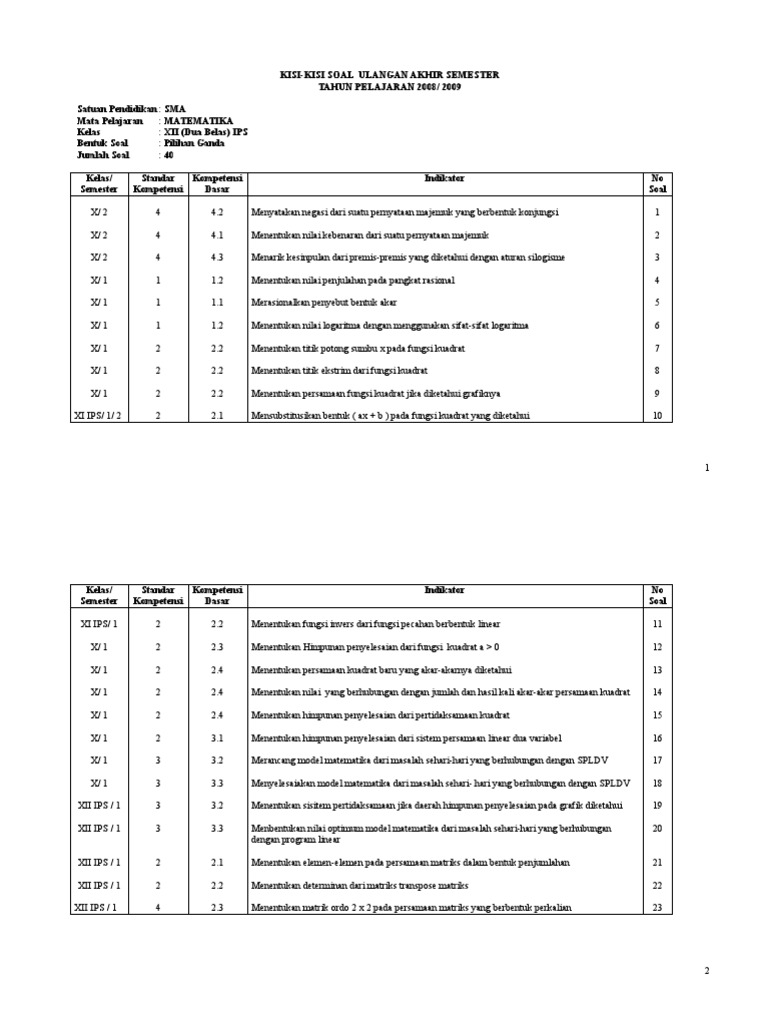 Kisi kisi soal uas mat ips untuk itu pada kesempatan ini kami ingin membagikan file kumpulan soal uts untuk sma ma bagi kelas x xi dan xii semester 1 ganjil dan semester 2 genap. Kegiatan uas biasanya dilaksanakan pada bulan desember yang mana setiap guru tentunya harus membuat berbagai persiapan terkait kegiatan ini seperti. Sma negeri 1 karangreja alokasi waktu : Ix / gasal tahun pelajaran : Dokumen akan dibagikan secara bertahap berdasarkan ketersediaan pada arsip admin sendiri. Kisi kisi soal ukk ips kelas 2 from data03.123doks.com sebagai materi latihan menghadapi ulangan kenaikan kelas (ukk) atau penilaian kenaikan kelas berikut ini admin. Walaupun saat ini masih dalam kondisi pandemi. Beberapa waktu lalu ada seorang teman yang menanyakan tentang misteri segitiga bermuda, kaitannya dengan setan dan munculnya dajjal. Maka dari itu anda sebagai seorang guru harus membuat soal dengan baik dan benar.