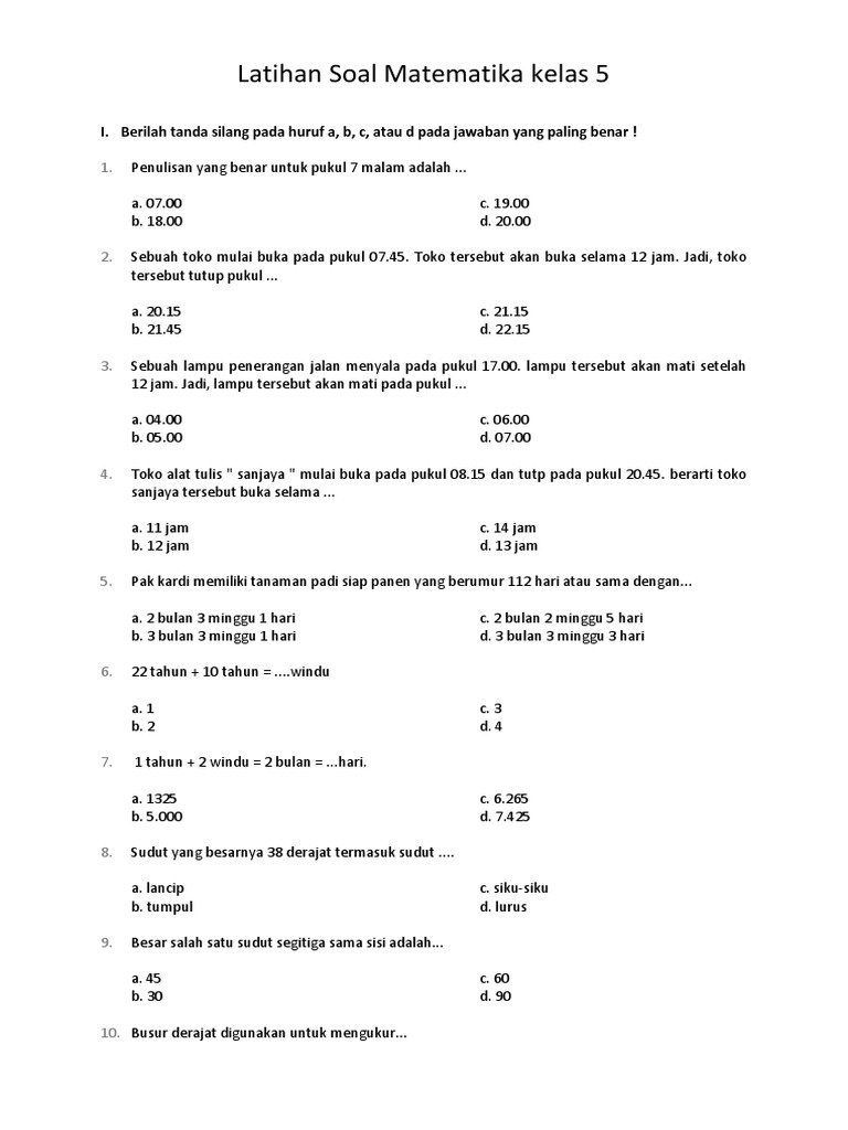 Soal uas semester genap mata pelajaran matematika kelas 5 kurikulum 2013 (k13) terdiri dari soal pilihan ganda, isian singkat, dan uraian. Soal matematika kelas 2 sd semester 1 umumnya terdiri dari soal bilangan cacah, penjumlahan, pengurangan, hingga soal cerita. Demikian download soal pas/uas matematika kelas 5 sd/mi semester 2 tahun 2019 lengkap kunci jawaban. (2) latihan terbimbing dan (3) latihan mandiri. Artikel soal matematika kelas 5 ini di lengkapi dengan dengan berbagai soal pilihan ganda atau soal essay tingkat kurikulum untuk sd, lengkap dengan kunci. Download soal ulangan harian kelas 5 semester 2 lengkap sesuai dengan kurikulum 2013 revisi terbaru, untuk tema 6, 7, 8, dan 9 yang mencakup setiap sub tema. Sebuah bak mandi mempunyai ukuran panjang 120 cm, lebar 60 cm, dan tinggi 75 cm. Contoh soal pts kelas 5 semester 2 kurikulum 2013 yang coba saya bagikan ini tema 6 dan tema 7. Contoh soal matematika kelas 5 sd/mi lengkap dengan kunci jawabannya pilihan ganda.